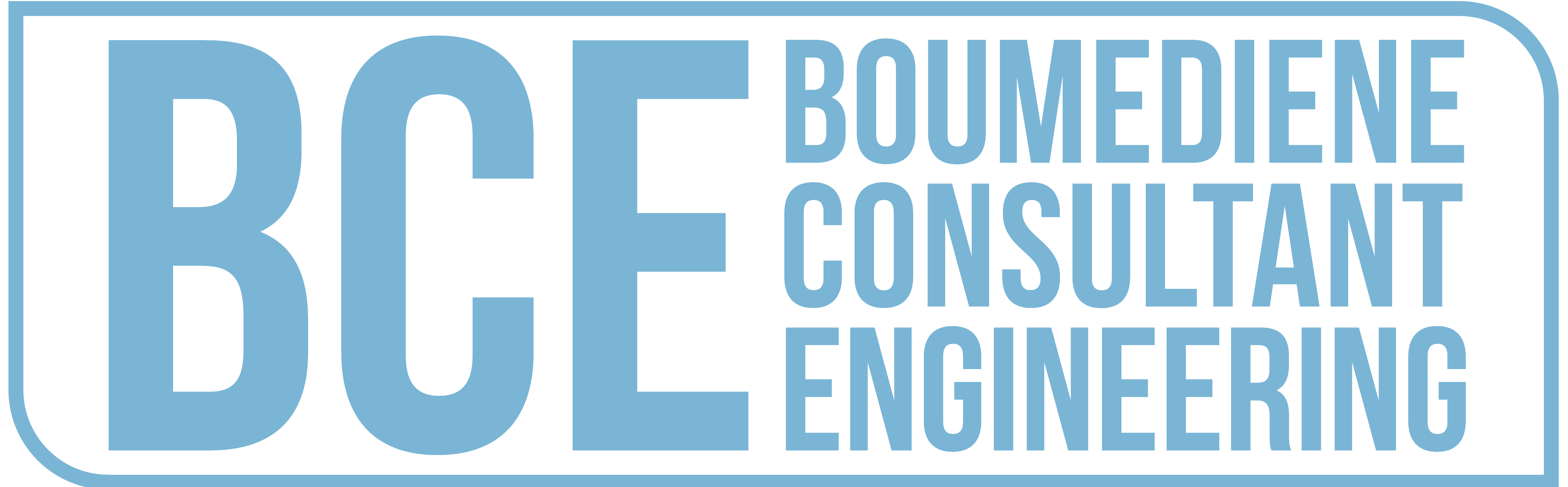 BCE (BOUMEDIENE CONSULTANT ENGINEERING) est un bureau d’études pluridisciplinaires spécialisé dans le domaine de l’engineering BTPH, crée en 2016, par Monsieur BOUMEDIENE (ingénieur-Gérant | enseignant à l’université d’Alger-1- BEN YOUCEF BEN KHADDA).